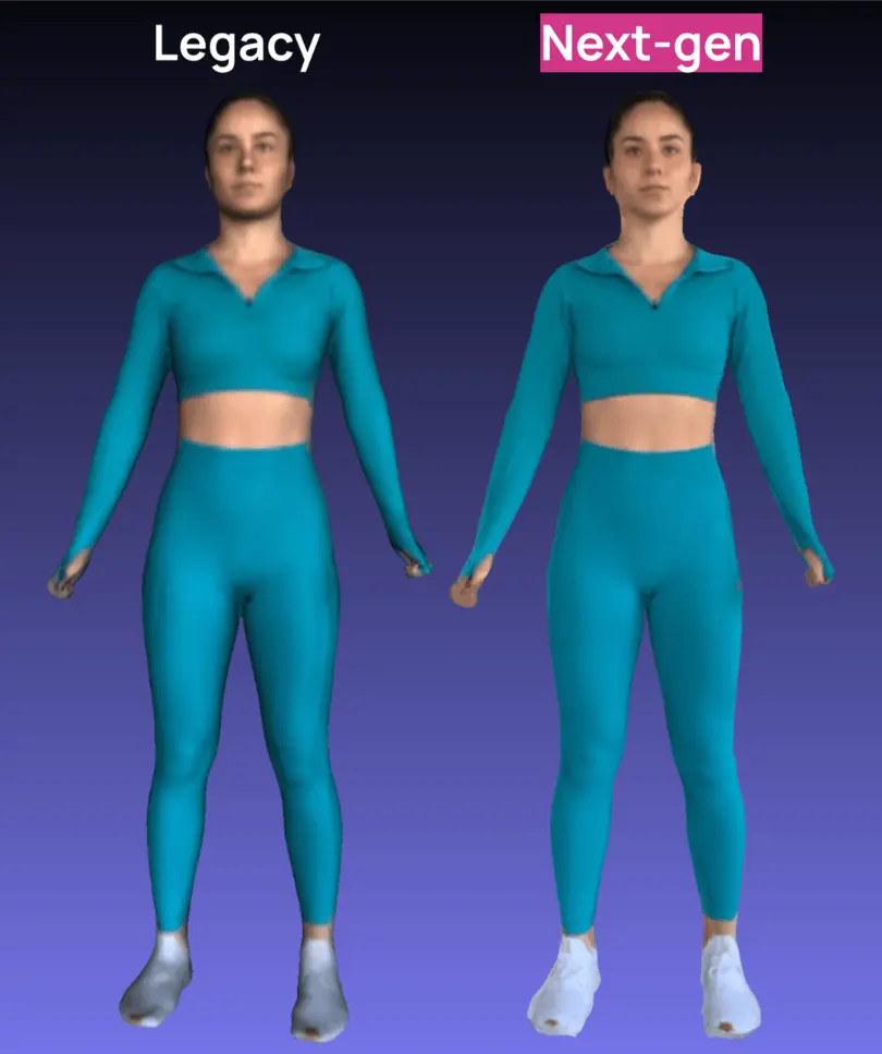 Our 3D body scans now look photorealistic, thanks to enhanced realism, detailed facial features, and improved overall resolution of the 3D mesh. Upgrading to this new configuration is highly recommended for immediate benefits and to support upcoming advanced capabilities like Future Me (body shape predictions) and muscle region highlighting. For more details, check out our upgrade guide.